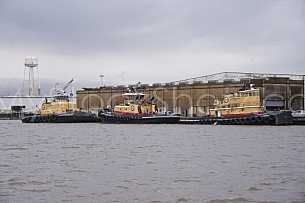 • Description: Shot of ships docked in port with a...